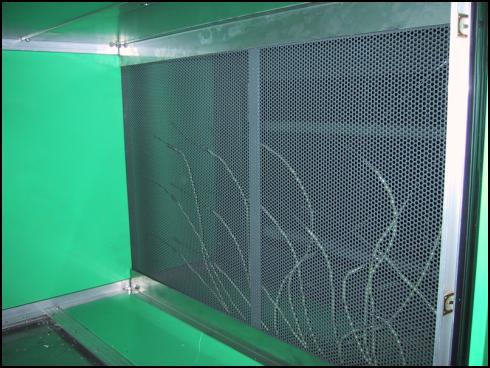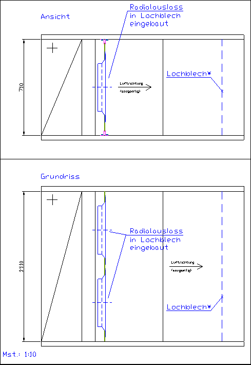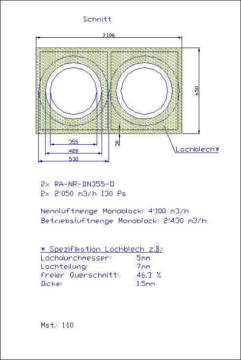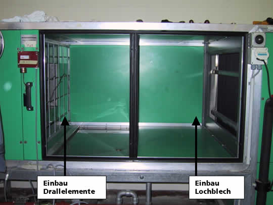 Das Lochblech mit den Drallelementen wurde unmittelbar nach der Frostschutzschublade eingebaut. Das Lochblech vor dem Eintritt zum Luftwäscher. Die genauen Masse sind im Anhang aufgezeichnet.