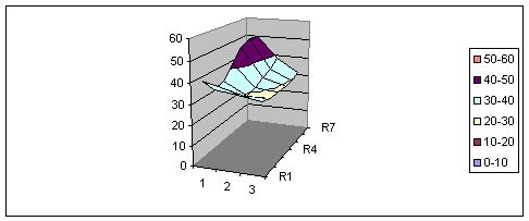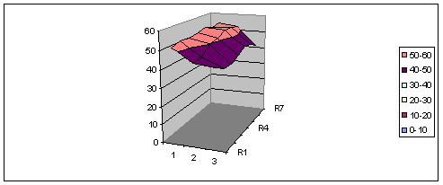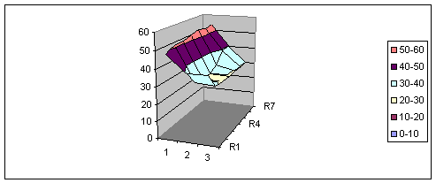 Auch nach dem Lochblech, also nach fast einem Meter Distanz im Lüftungsgerät, ist die Schichtung immer noch erhalten. Auch hier sind die höchsten Werte im rechten oberen Bereich. Was verändert sich, wenn das Ventil mehr geöffnet wird?
