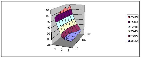 5. Messung der TemperaturschichtungenDamit die Temperaturschichtungen erfasst werden konnten, wurden Temperaturmessungen über den ganzen Querschnitt gemacht. Die Messsonden und deren Anordnung sind auf dem Bild 4.5 gut und auf den Bild 4.4 teilweise zu erkennen. Als Messinstrument diente ein Datenlogger der Firma Hewlett Packard Typ 3497 mit zwei Eingangskarten zu je 20 Messpunkten. Je ein Messpunkt war der Eispunkt. 19 Messpunkte konnten über den ganzen Querschnitt gleichmässig verteilt werden. In der Tabelle 5.1 ist die Verteilung und die Nummerierungen der Messpunkte schematisch dargestellt.