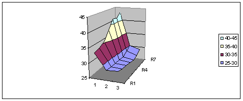 Die Schichtung ist bei der Messung gut zu erkennen. Im oberen Teil des Lufterhitzers ist es ca. 10 bis 20°C wärmer als im unteren Teil. Die höchste Temperatur ist im rechten oberen Bereich.